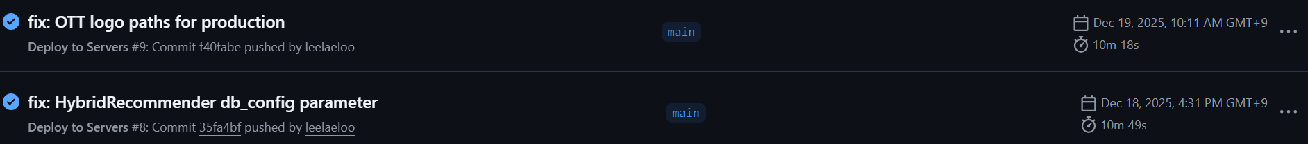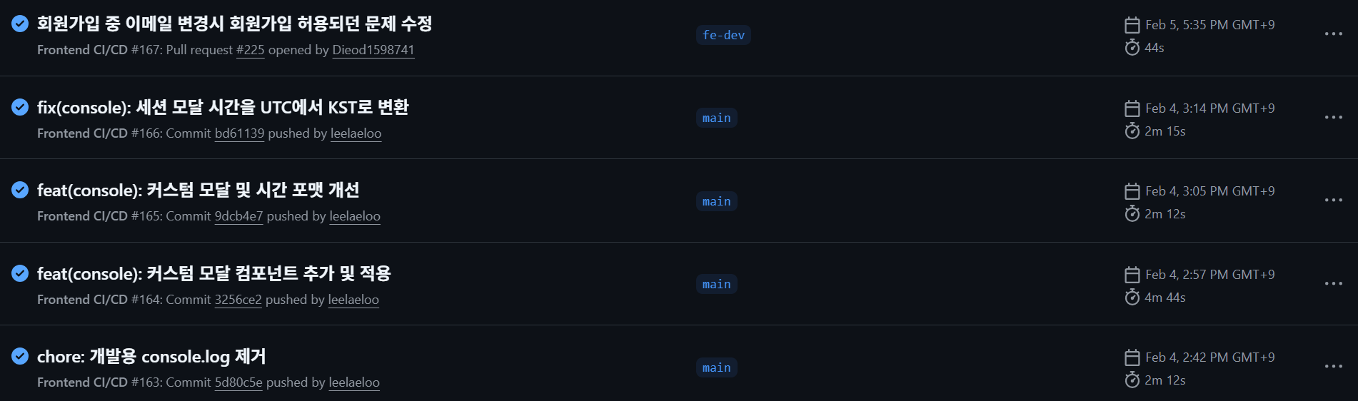 dev/main push만으로 자동 배포. 수동 배포 대비 배포 시간 단축, 휴먼 에러 제거.