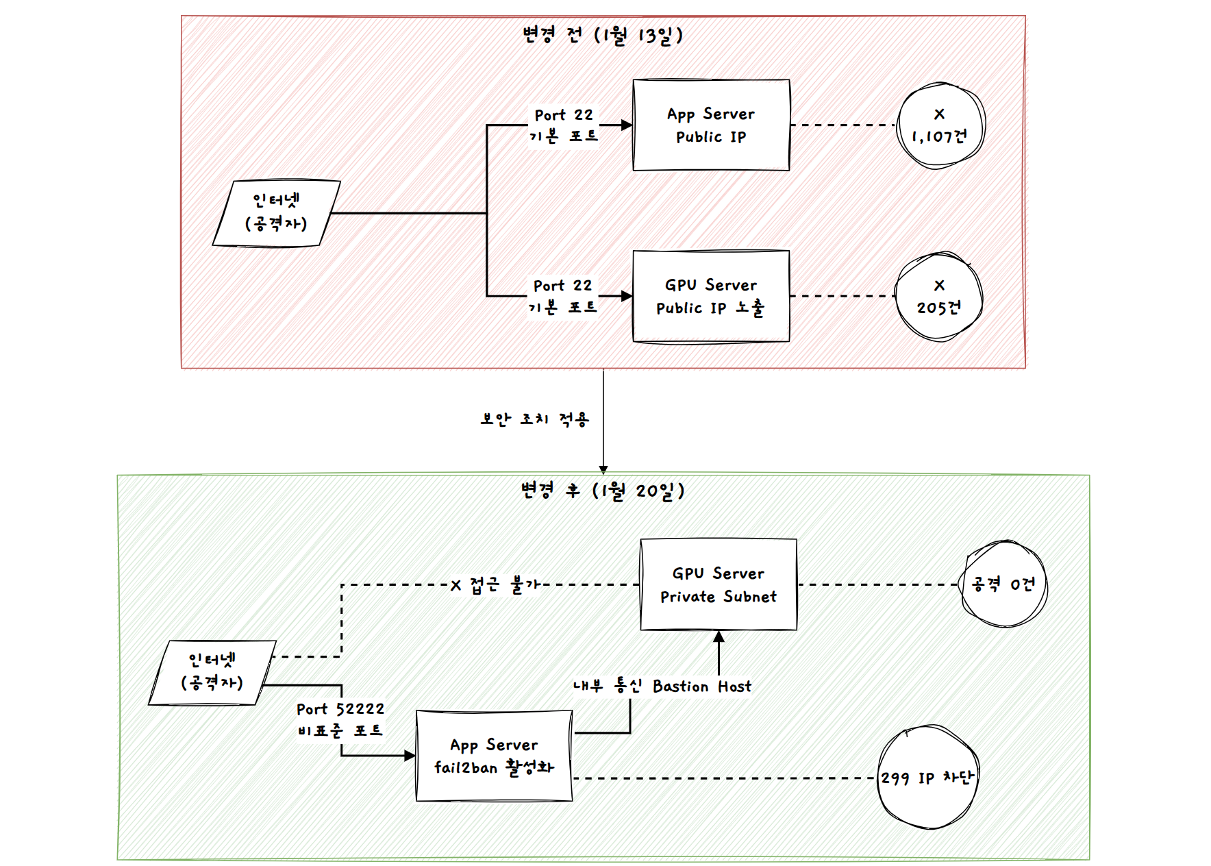 •SSH 브루트포스 공격 대응 (5,227건 → 0건)