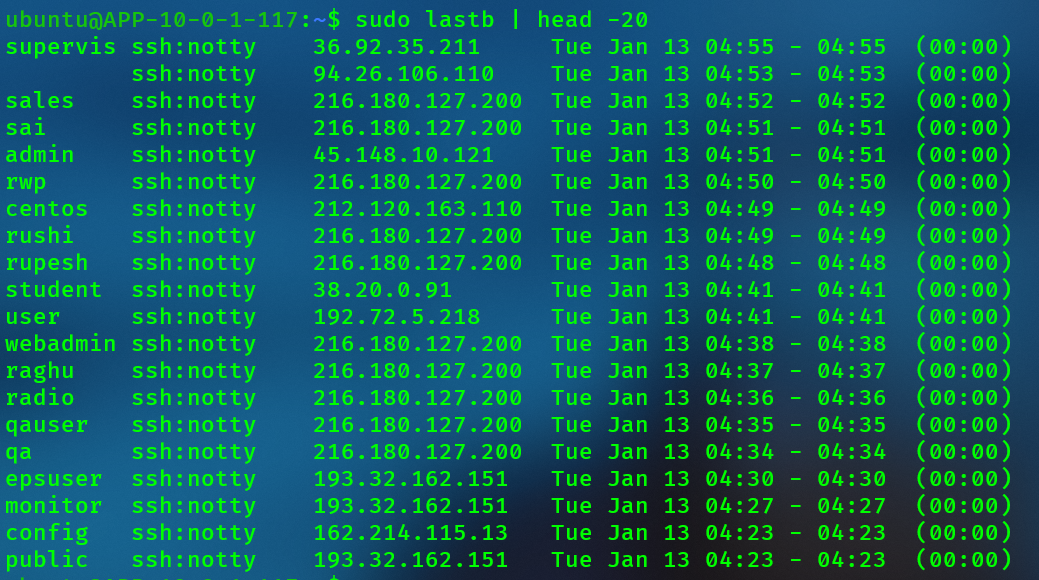 서버 운영 2주 만에 lastb로 1,107건 SSH 로그인 실패 기록 발견. 자동화된 봇의 브루트포스 공격.