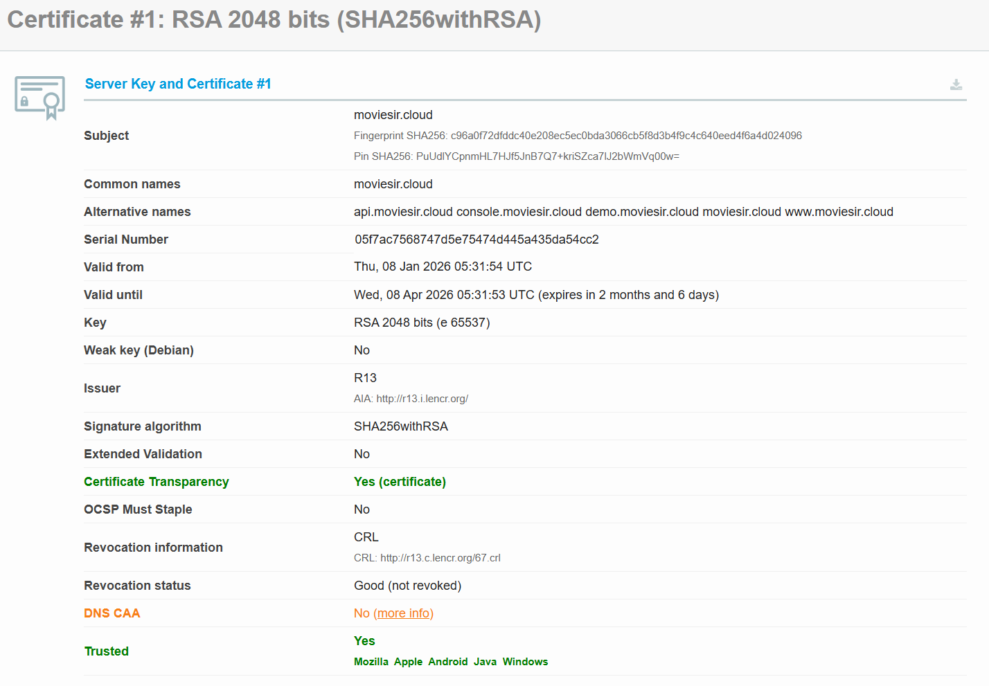 •Nginx SSL Labs A+ 등급 달성 (TLS 1.3, HSTS)